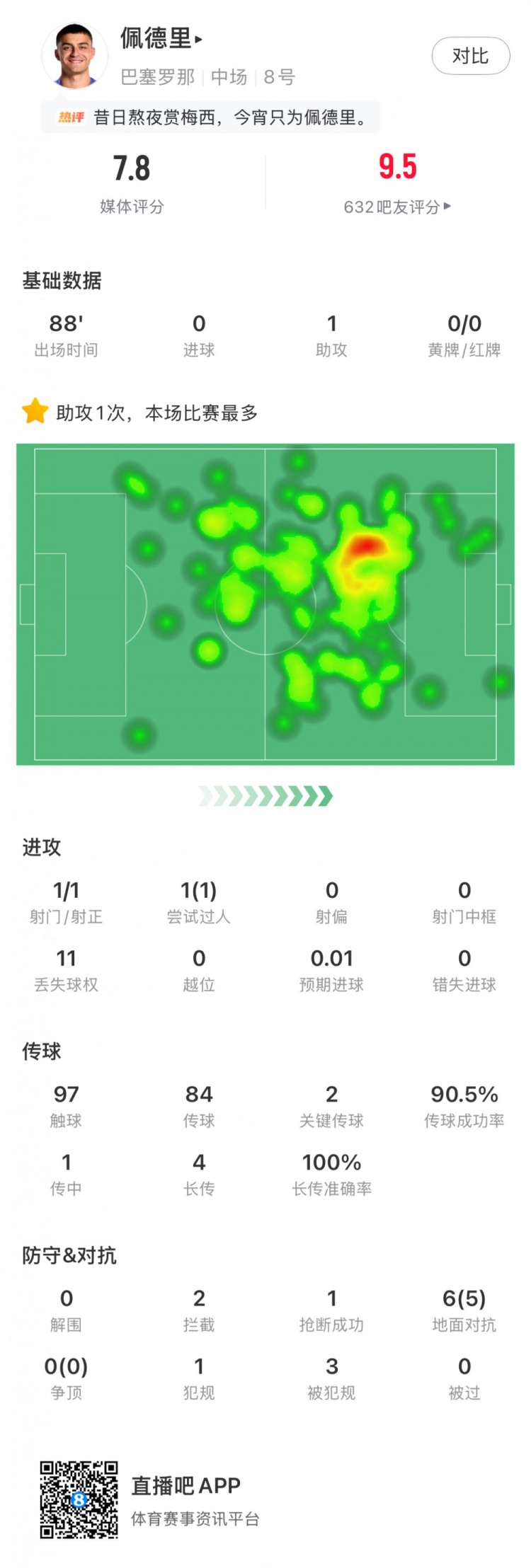 除特别注明外,本站所有内容均为柠檬直播整理排版,转载请注明出处:佩德里数据:1助攻,2关键传球,4长传+准确率100%,评分7.8