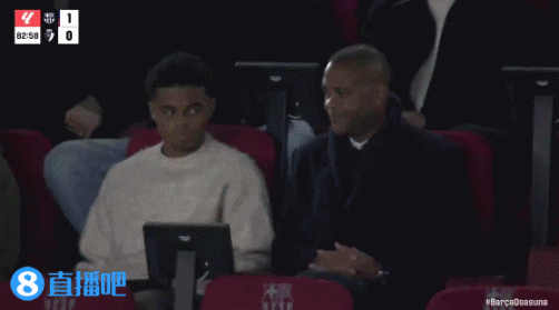 比赛下半场转播镜头拍到克鲁伊维特也出现在了巴萨的看台上!